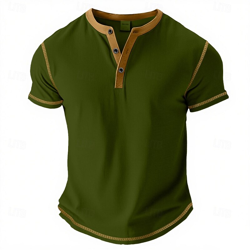 Highlights - Perfect for summer: Keep cool and stylish in this short-sleeve Henley shirt. - Designed for men: Embrace a basic yet casual style that is perfect for a vacation. - Stand out with contrast lace detailing: Add a unique touch to your wardrobe with this eye-catching design.