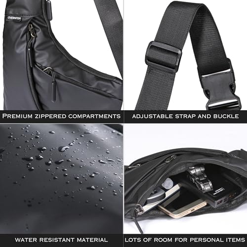 • WATER RESISTANT - designed to weather the elements - this water-resistant casual chest bag will ensure your valuables and important items stay dry and safe providing you with peace of mind.