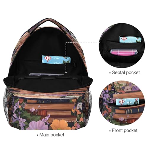 Bookworm Flower Butterfly Backpack for School Boys Girls Adults Kids Bookbag Laptop Bag 15L 1