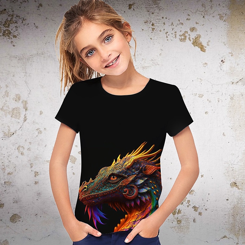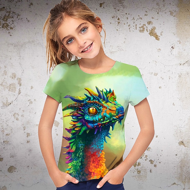 More information about Girls' 3D Graphic Animal Dinosaur T shirt Tee Short Sleeve 3D Print Summer Spring Active Fashion Streetwear Polyester Kids 3-12 Years Outdoor Casual Daily Regular Fit