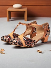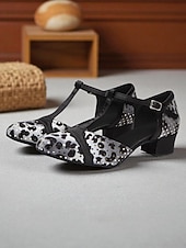 More information about Women's Leopard Print Satin T-Strap Dance Shoes with Low Heel - Professional Ballroom and Latin Performance Footwear