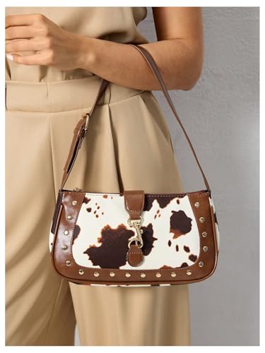HOT ! QWINEE Y2k Western Cowgirl Shoulder Bag Rivet Animal Print Hobo Bag Zipper Faux Pu Leather Clutch Purse Vintage Handbag