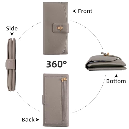 Long Wallet Women PU Leather Cash Wallets Womens Zipper Anti Theft Wallet Coin Purse Credit Card Holder with 14 Slots for Ladies Money Bag - Grey Brown 4