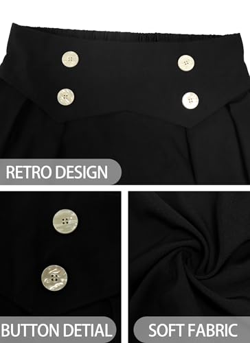 Herou Women's Casual Vintage Pleated A-Line Flared High Waist Elastic Button Front Black Midi Skater Skirt 4