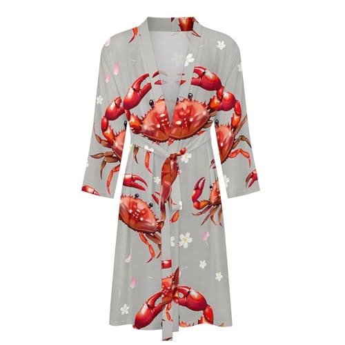 More information about Seafood Marine Crabs Cherry Flowers Men's Robes Long Sleeve V Neck Bath Robe Printed Bathrobes Cozy Soft Sleepwear