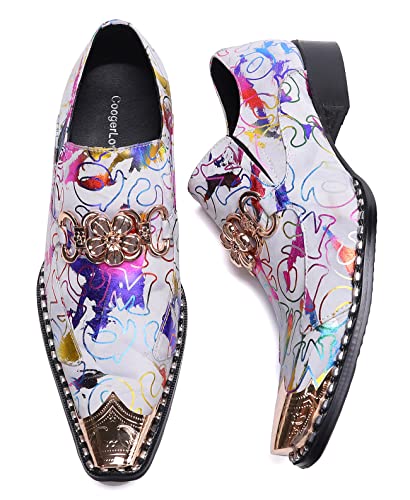 Santimon Mens Genuine Leather Dress Loafers Formal Business Snaffle Floral Bit Comfortable Metallic Cap Slip On Party Shoes 7
