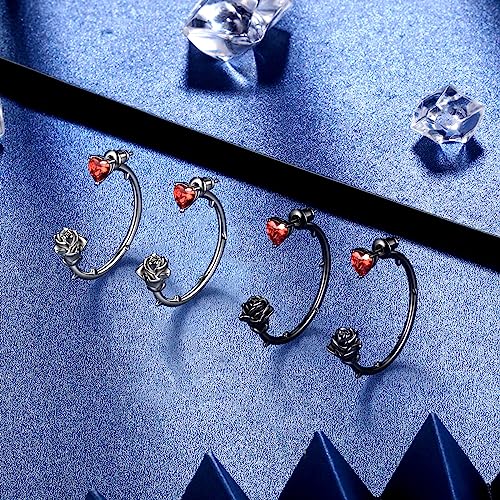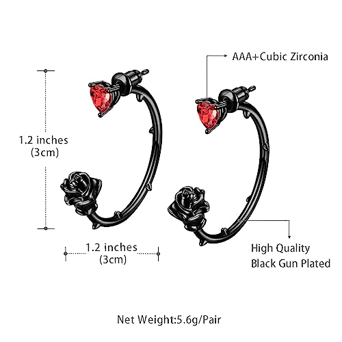 Beautlace Rose Hoop Earrings Sliver/Black Gun Plated Cute Elegant Flower Earring with Birthstone Jewelry Gifts for Women KE0102 5