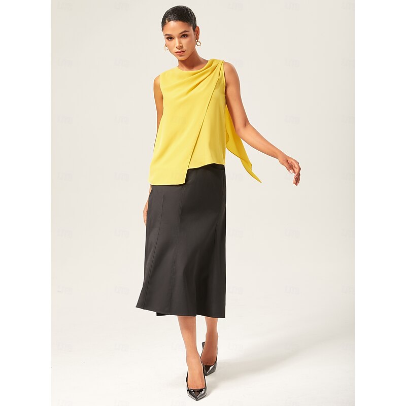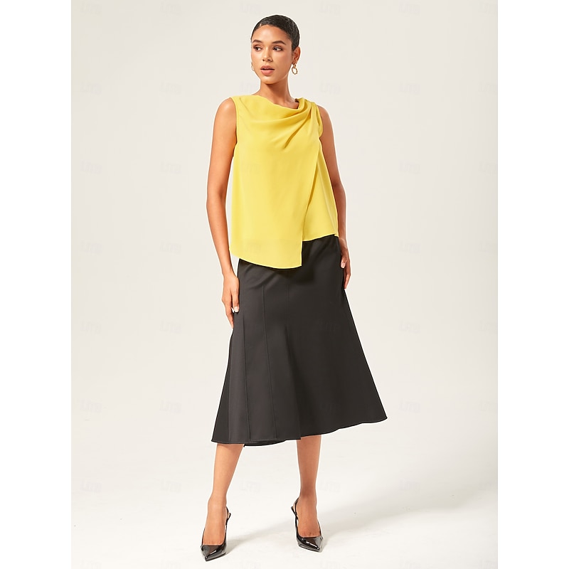 HOT ! Light Yellow Cowl Neck Sleeveless Blouse
