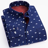 More information about Men's Shacket Plaid / Striped / Chevron / Round Vacation New Year Navy blue+white Wine Red Dark Navy Long Sleeve Classic Collar Fall / Winter Clothing Apparel Print
