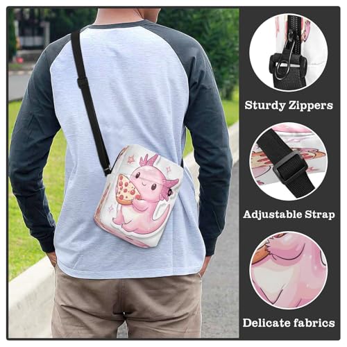 HOT ! Crossbody Bag Cute Axolotl Pizza Messenger Bag for Women Men Purse Shoulder Bag Satchel Bag with Adjustable Strap 214B8890