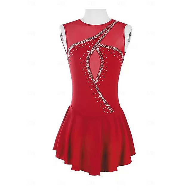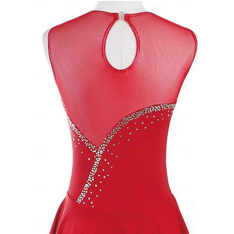 More information about Figure Skating Dress Women's Girls' Ice Skating Dress Burgundy Patchwork Thumbhole Mesh Spandex Stretchy Training Practice Professional Skating Wear Thermal Warm Crystal / Rhinestone Sleeveless Ice