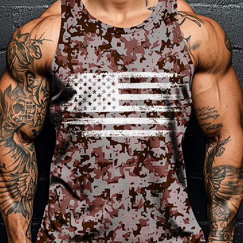 Veterans Day Men's Patriot Patriotic Veteran Camo Camouflage T Shirt Vest Top Sleeveless T shirt 3D Print Crew Neck Shirt Vacation Casual Hawaiian Holiday Red Navy Blue Green Summer Spring Clothing 3