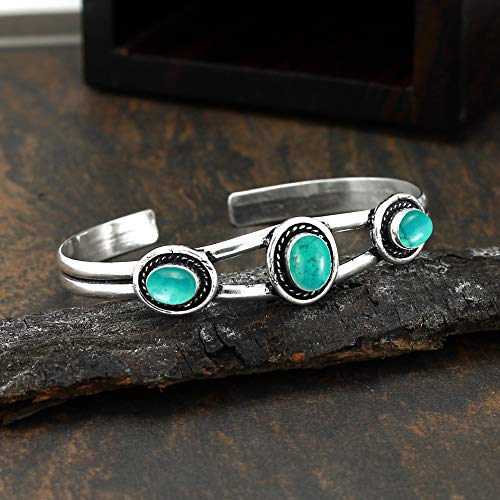 Natural Three Gemstones 925 Silver Overlay Open Bangle for Women - Oval Stone Vintage Style Handmade Adjustable Cuff Bracelet Jewelry - Perfect for Wedding & Special Occasions 5