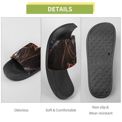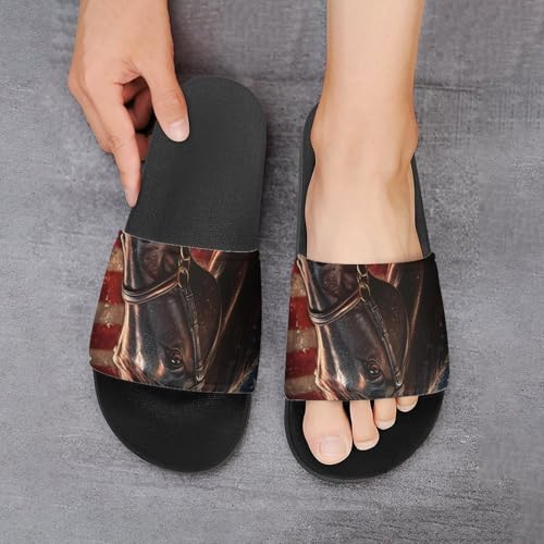 Vintage United States Flag Horses Shower Slippers for Women Men Casual Non-Slip Slide Sandals Beach Bathroom Shoes 7