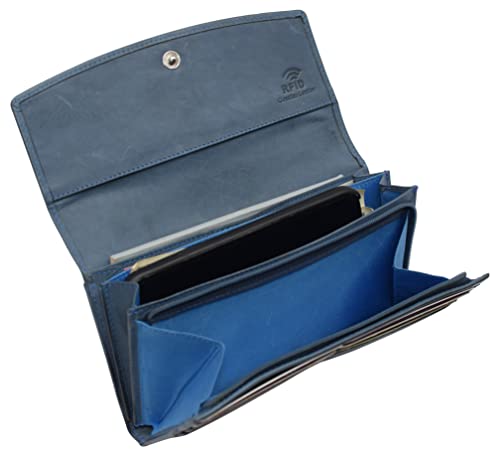 HOT ! Leather Flap Clutch RFID Wallets For Women - Big Womens Wallet Accordion Purse Organizer Zip Coin Pouch For Women Gift (Blue)