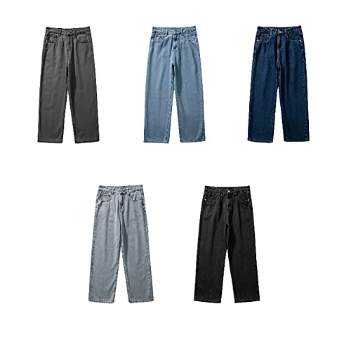 More information about Korean Fashion Jeans Classic Unisex Men's Straight Denim Wide Leg Pants Hip Hop Bagy Light Blue Grey Black