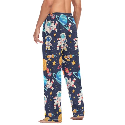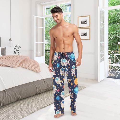 Vdsrup Men's Pajama Pants Planet Astronaut Pajama Pants for Men PJs Bottoms Drawstring Pockets Space Sleep Lounge Pants S 6