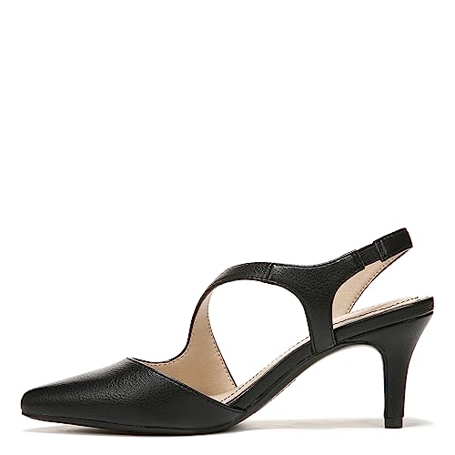 • Faux leather with a pointed toe, heel strap with stretch, and open cutout design