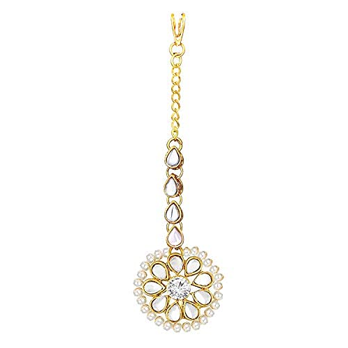 More information about Aheli Kundan Pearl Jhumki Earrings with Maang Tikka Indian Traditional Bollywood Fashion Jewelry Set Gift for Women