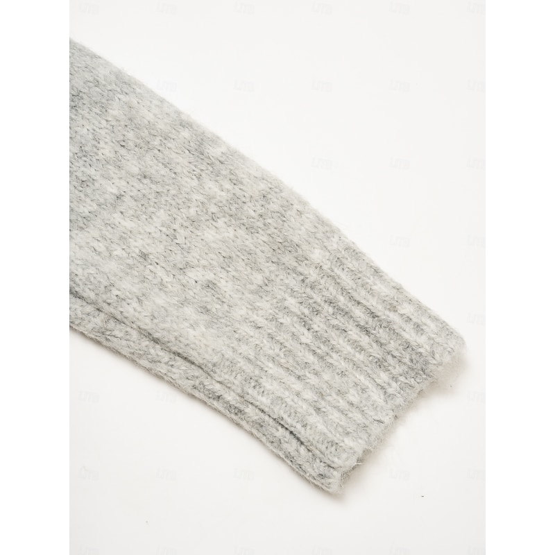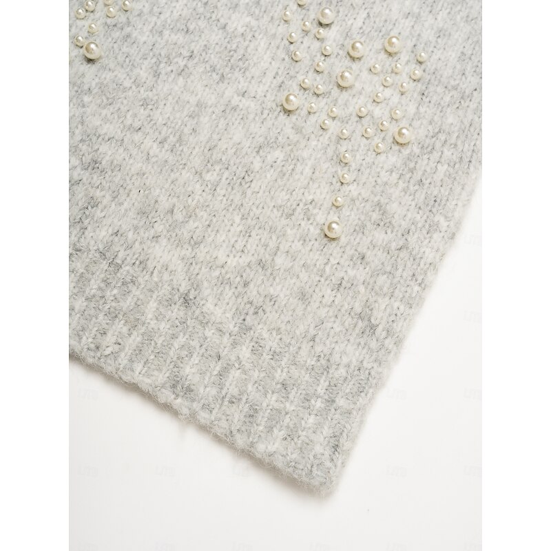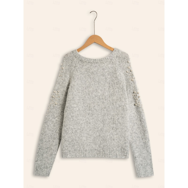 Women's Gray Pearl Beaded Crew Neck Long Sleeve Knit Pullover Sweater Jumper Casual Daily Fall Winter 2