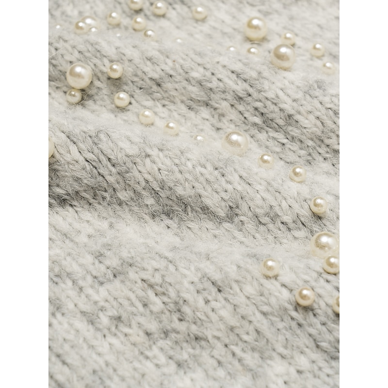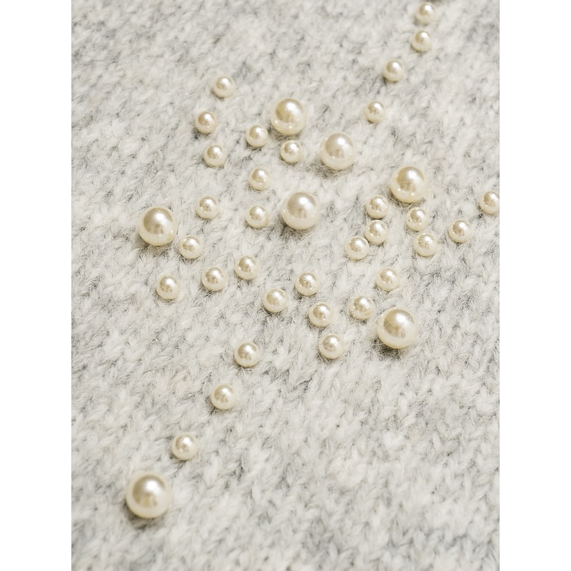 More information about Women's Gray Pearl Beaded Crew Neck Long Sleeve Knit Pullover Sweater Jumper Casual Daily Fall Winter