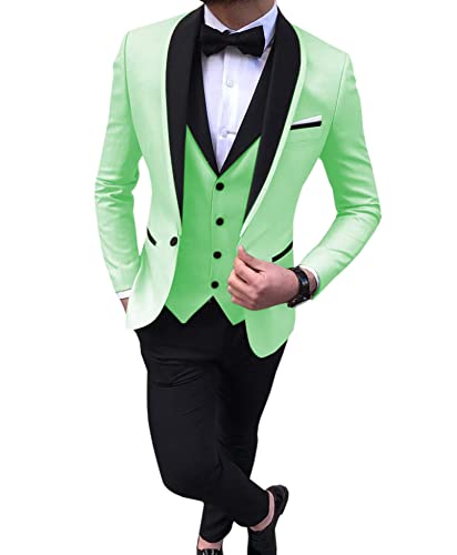 Men's 3 Pieces Suit Slim Fit Shawl Lapel Blazer Prom Tuxedos Wedding Groom Suit Black Pants Suit for Men 3