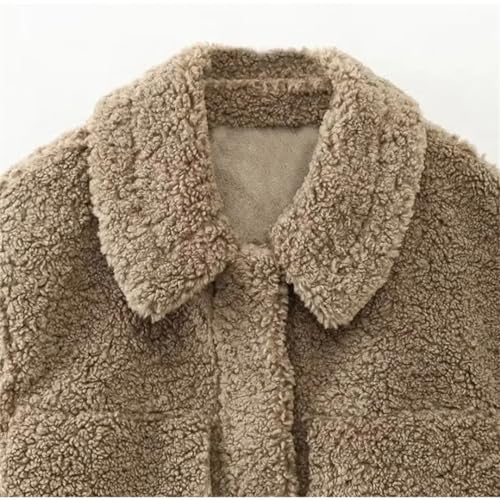 Casual Faux Lamb Wool Short Women Winter Coats Turn Down Collar Pocket Autumn Jackets