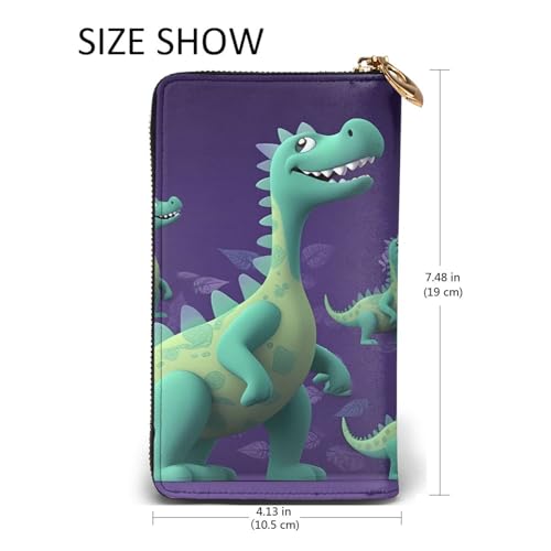 • Wardrobe Essential Travel Purse: The cleanly stitched seam of our Cartoon dinosaur leather wallet slim ensures durability and special protection against wear and tear. Its sleek design seamlessly transitions from the office to a night out, effortlessly complementing any outfit