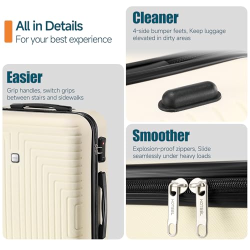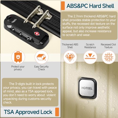 Hoteel Luggage Sets 3 Piece, 4-Yr Warranty ABS+PC Hard Shell Suitcases with Wheels, TSA Aproved Lock and Carry on Bags, Travel Suit Case Set for Men and Women, (3-Piece, Beige) 7