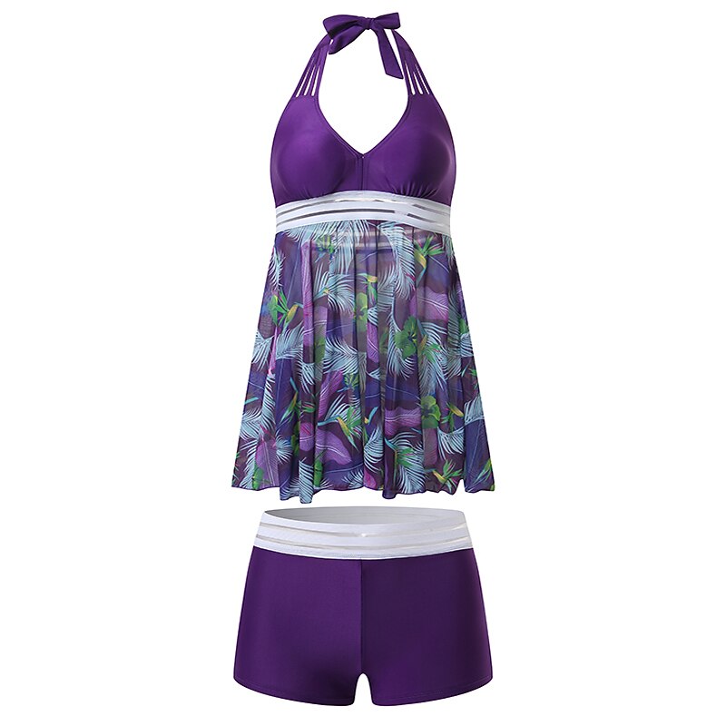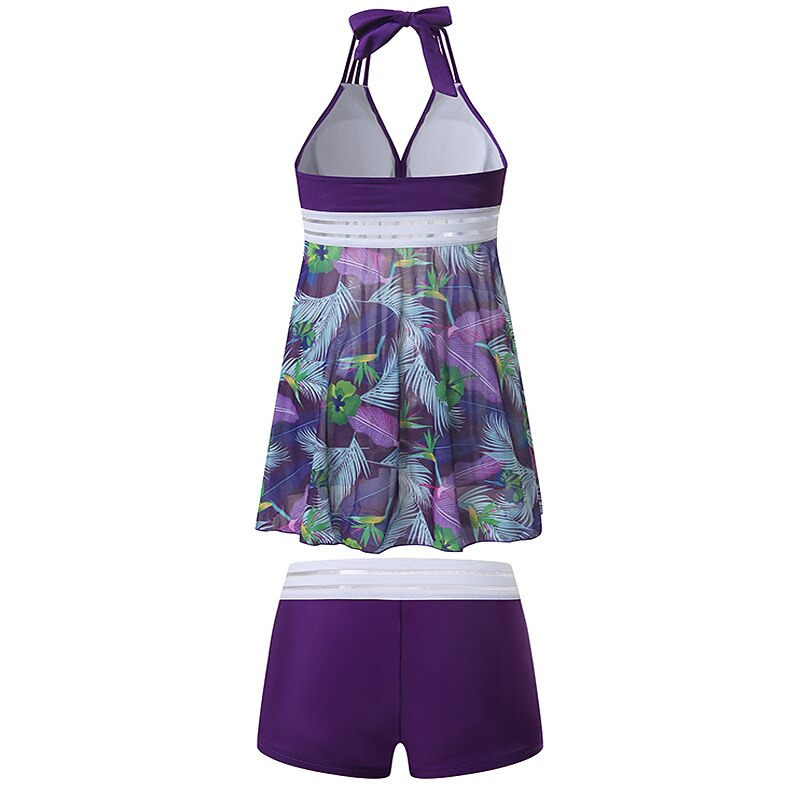 More information about Women's Plus Size Swimwear Tankini 2 Piece Swim Dress Swimsuit 2 Piece Modest Swimwear Open Back Printing for Big Busts Vacation Cute Floral Leaf V Wire Sleeveless Bathing Suits