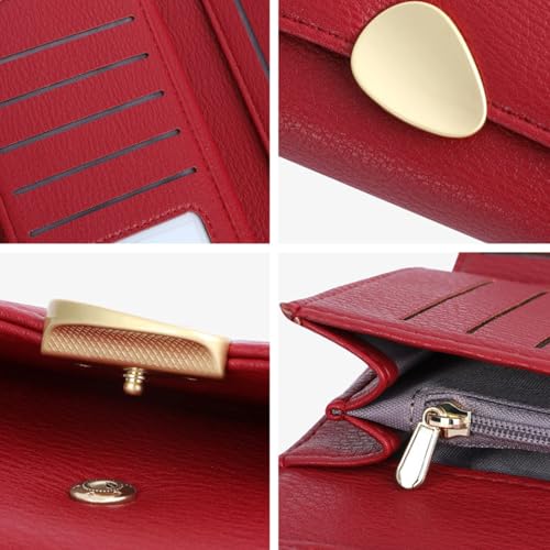 HOT ! Leather Wallet for Women, Large Capacity Trifold Hand Bag, Credit Card Holder Purse Ladies with ID/Photo Window & Zipper Coin Pocket (Red)