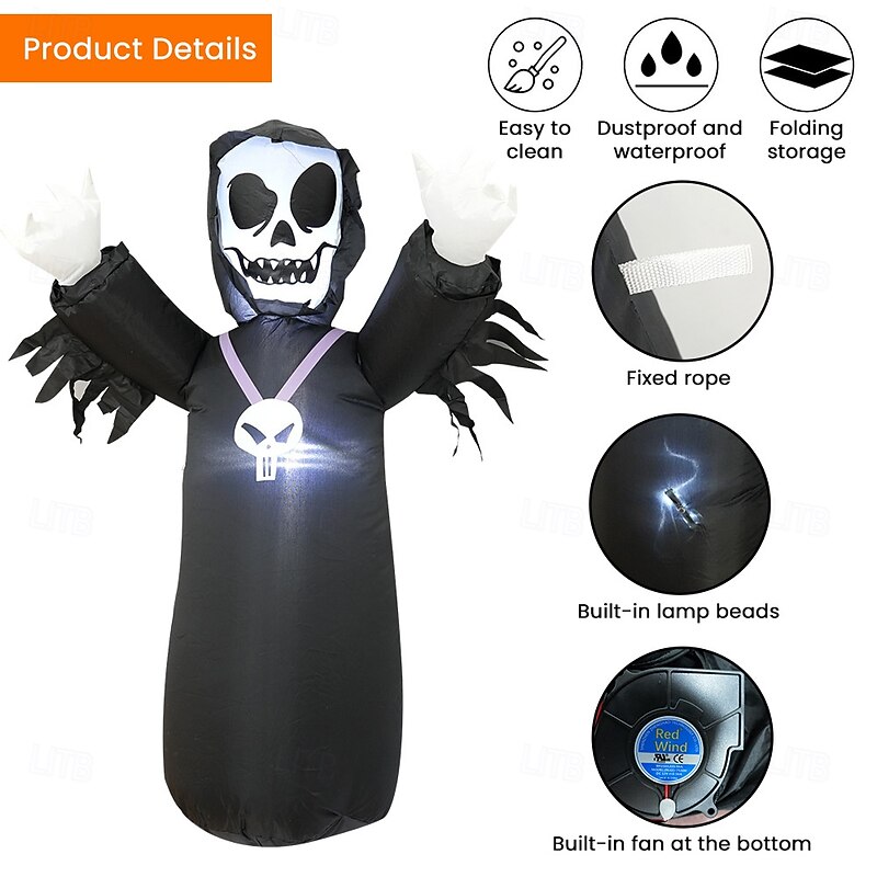 More information about 1 Pc 1.2M Halloween God of Death Skull LED Light Inflatable Air Model Indoor and Outdoor Courtyard Garden Party Halloween Festival Atmosphere Decorative Light EU/US/UK/AU Plug
