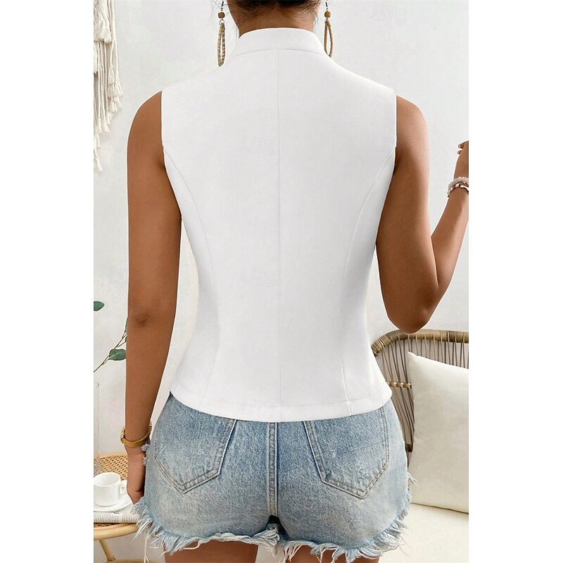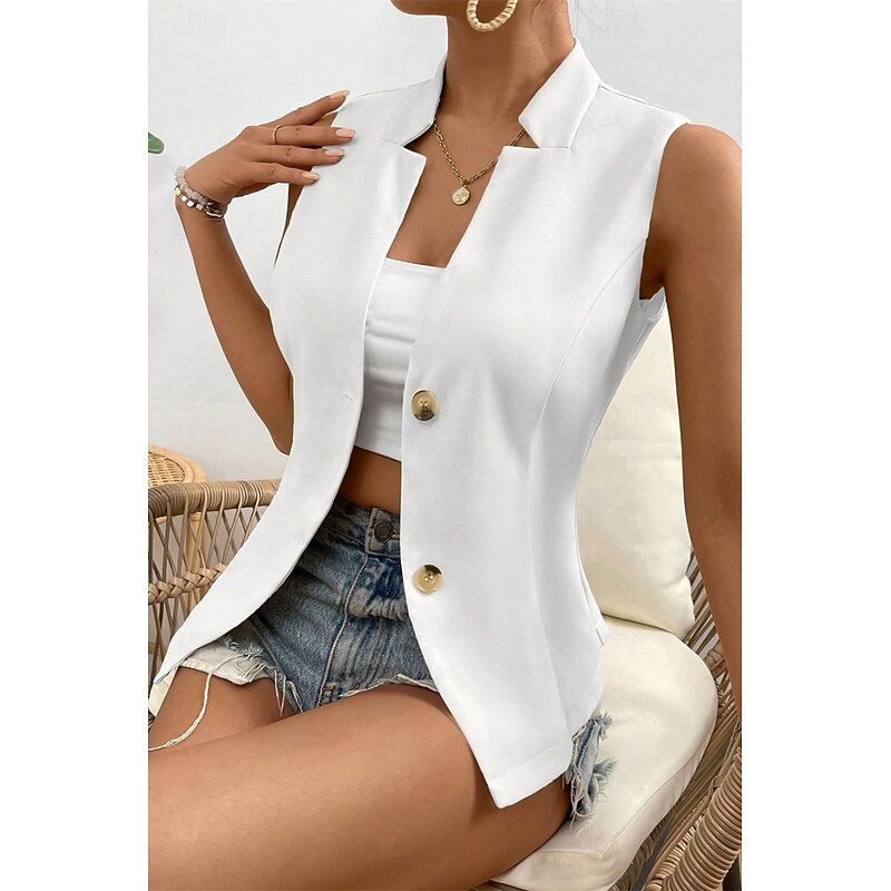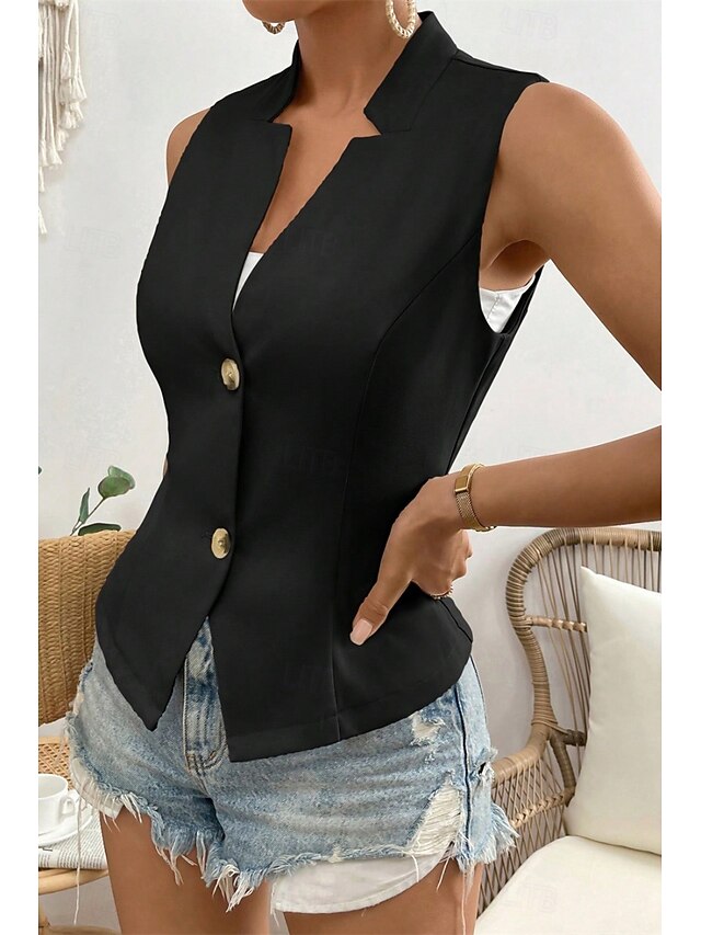 More information about Women's Linen Shirt Blouse Cotton Linen Vest Plain Casual Sleeveless V Neck Regular Tops Daily Going out Buttons Black White Champagne Summer