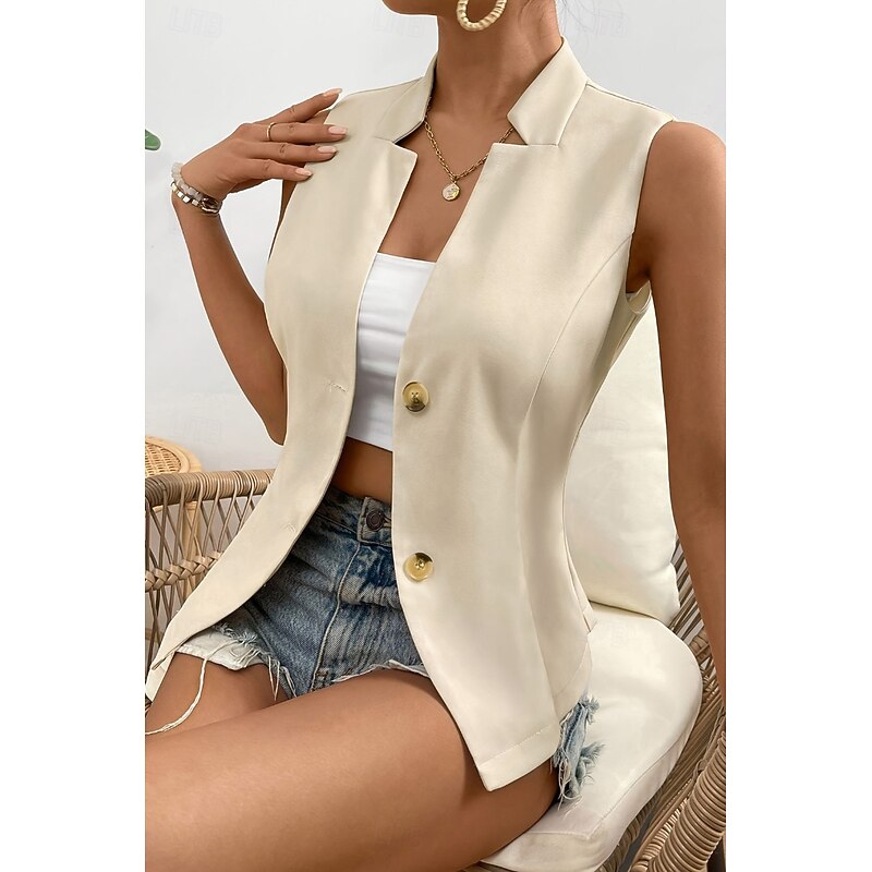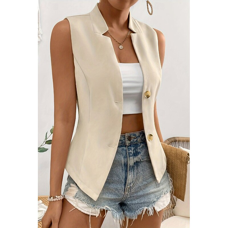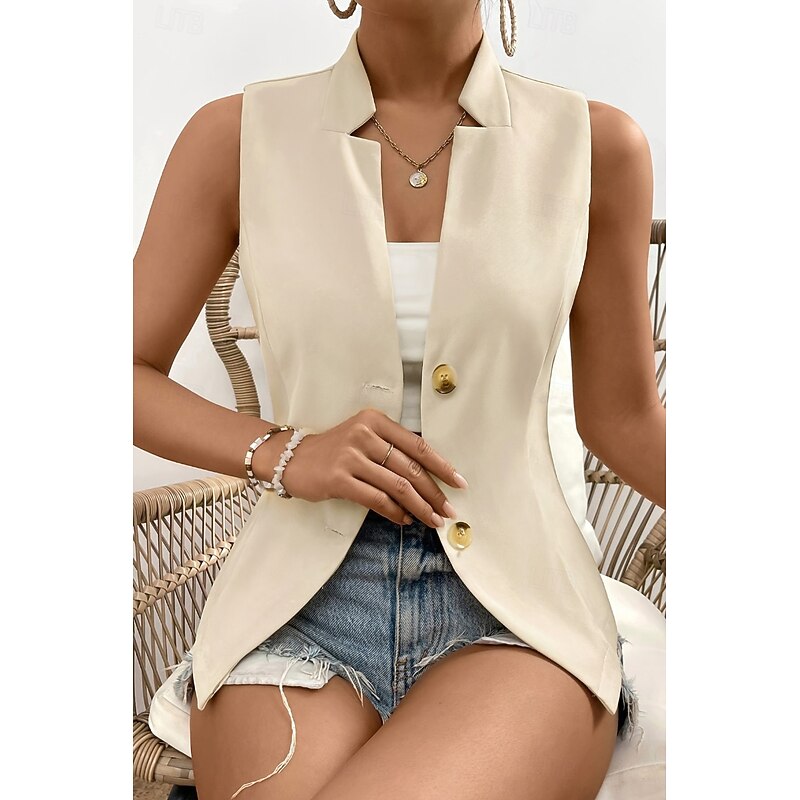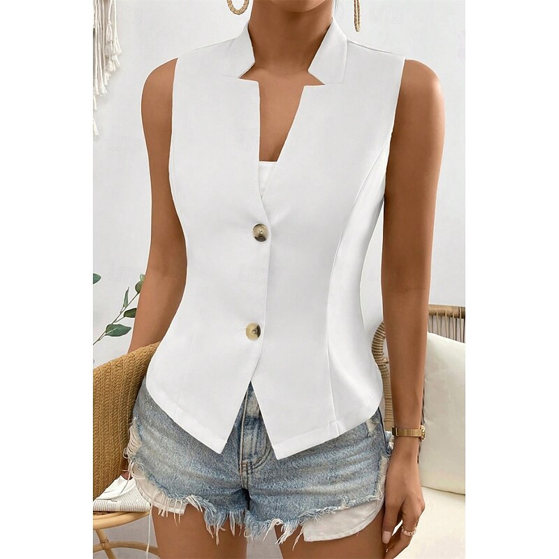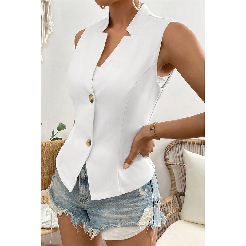HOT ! Women's Linen Shirt Blouse Cotton Linen Vest Plain Casual Sleeveless V Neck Regular Tops Daily Going out Buttons Black White Champagne Summer