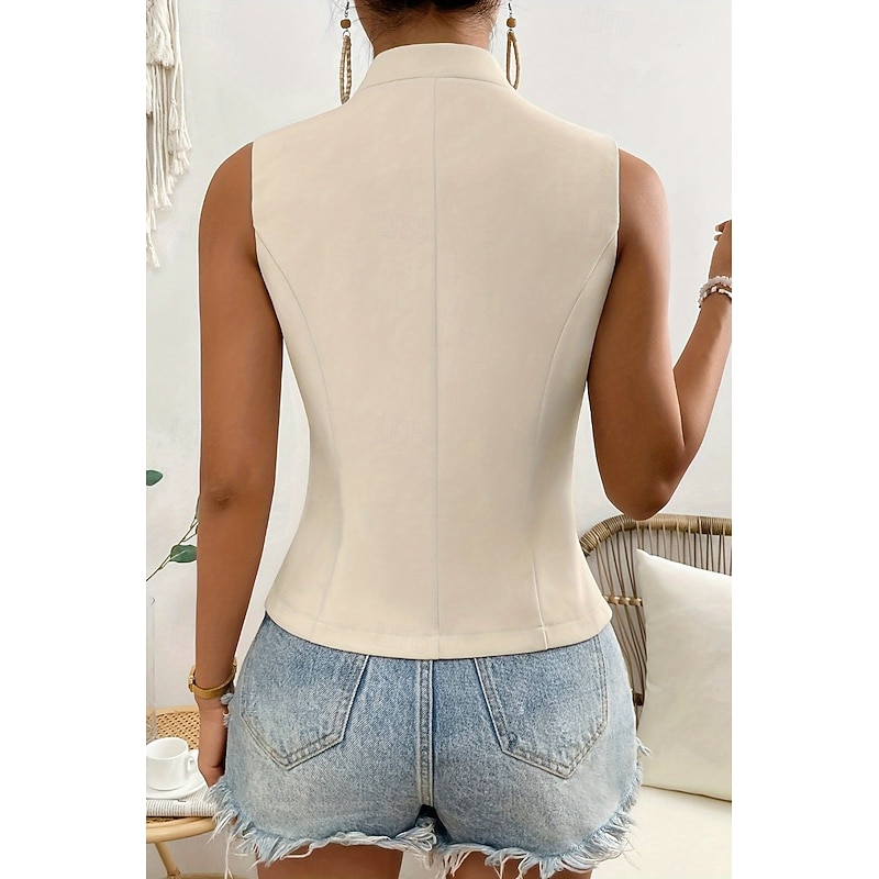 Women's Linen Shirt Blouse Cotton Linen Vest Plain Casual Sleeveless V Neck Regular Tops Daily Going out Buttons Black White Champagne Summer 16