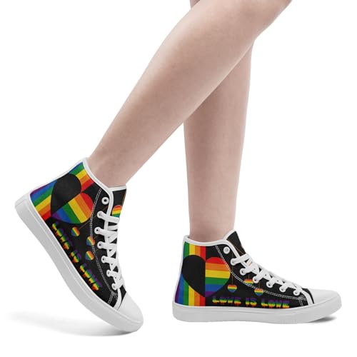 HOT ! Pride Month High Top Canvas Sneakers Rainbow Lace Up Shoes for Men & Women Breathable Walking Footwear LGBTQ Gift