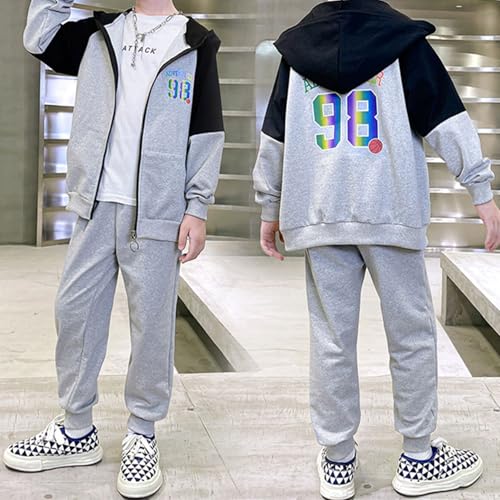 Boys Tracksuit Activewear Long Sleeve Zipper Hoodies Sweatshirt And Sweatpants Outfit Piece Jogging Set 3