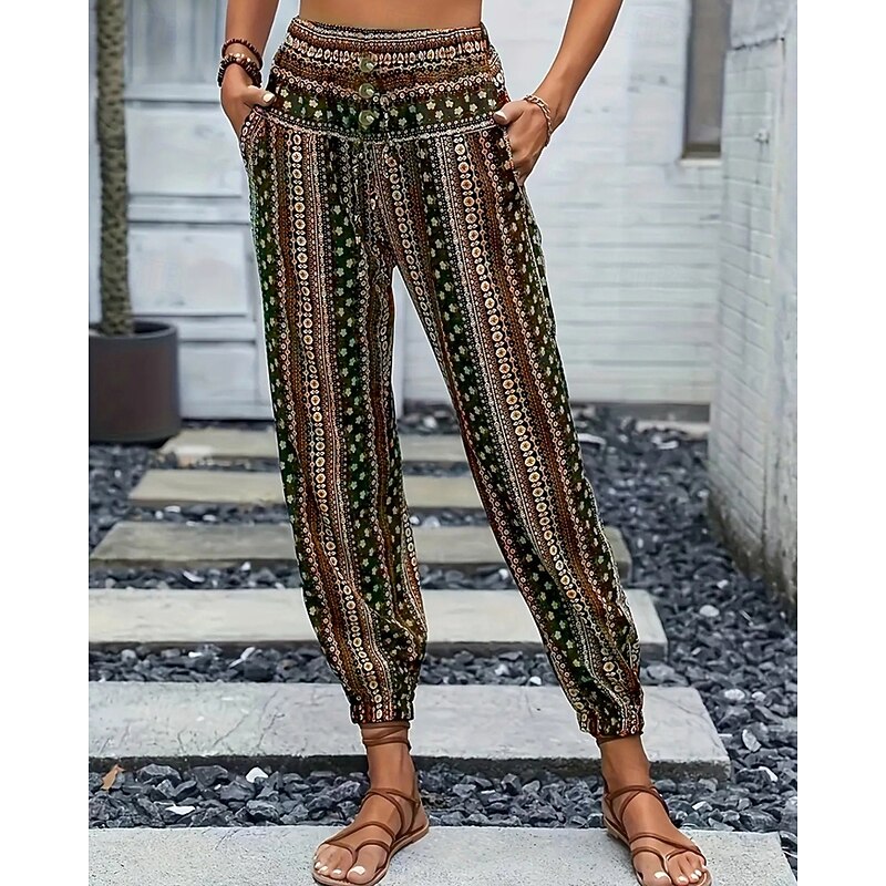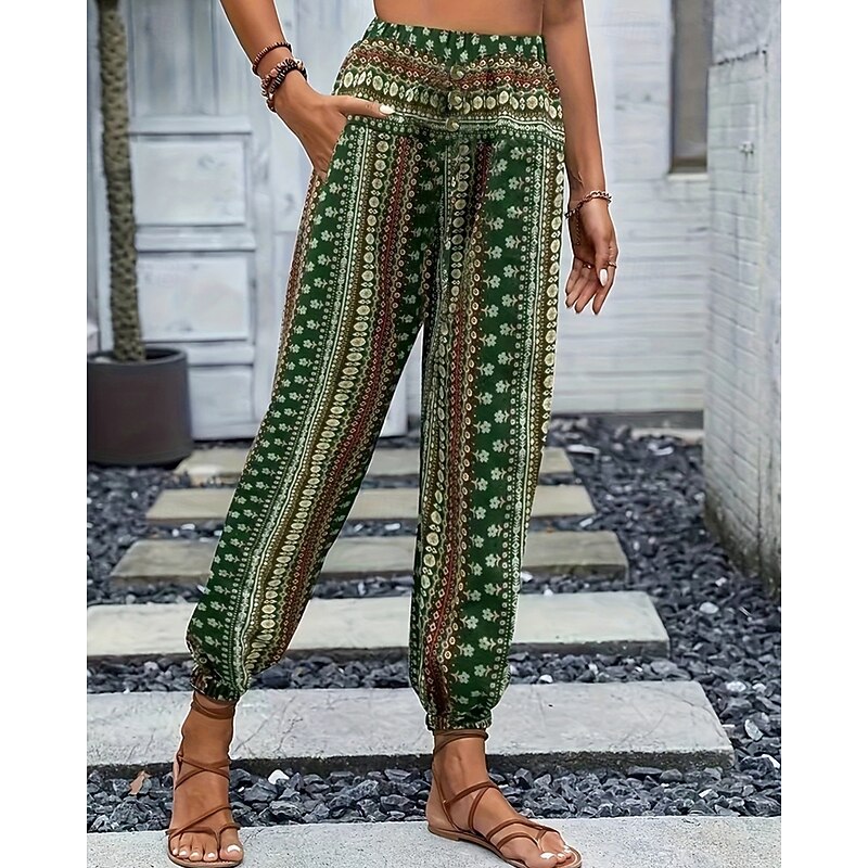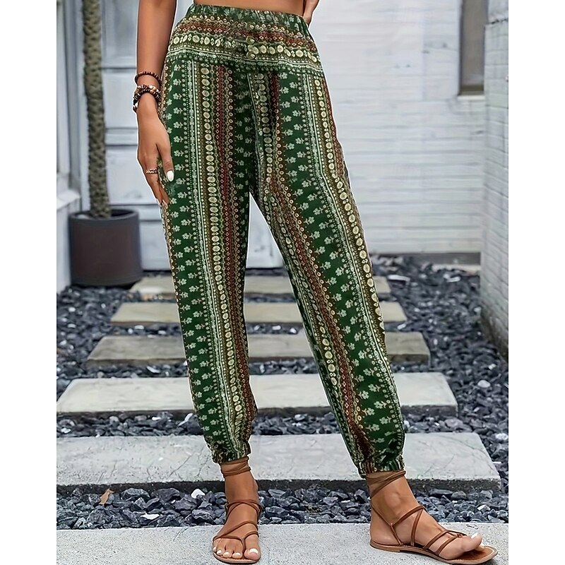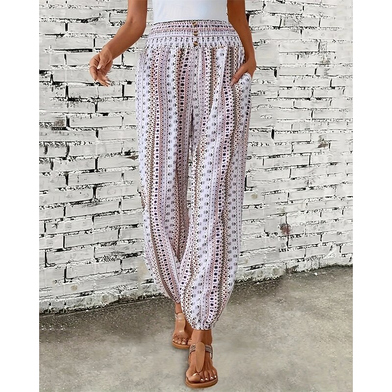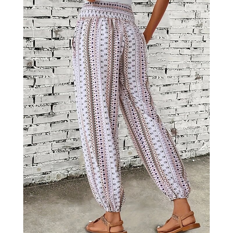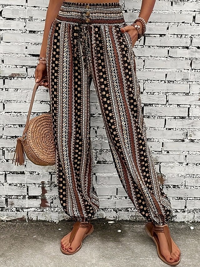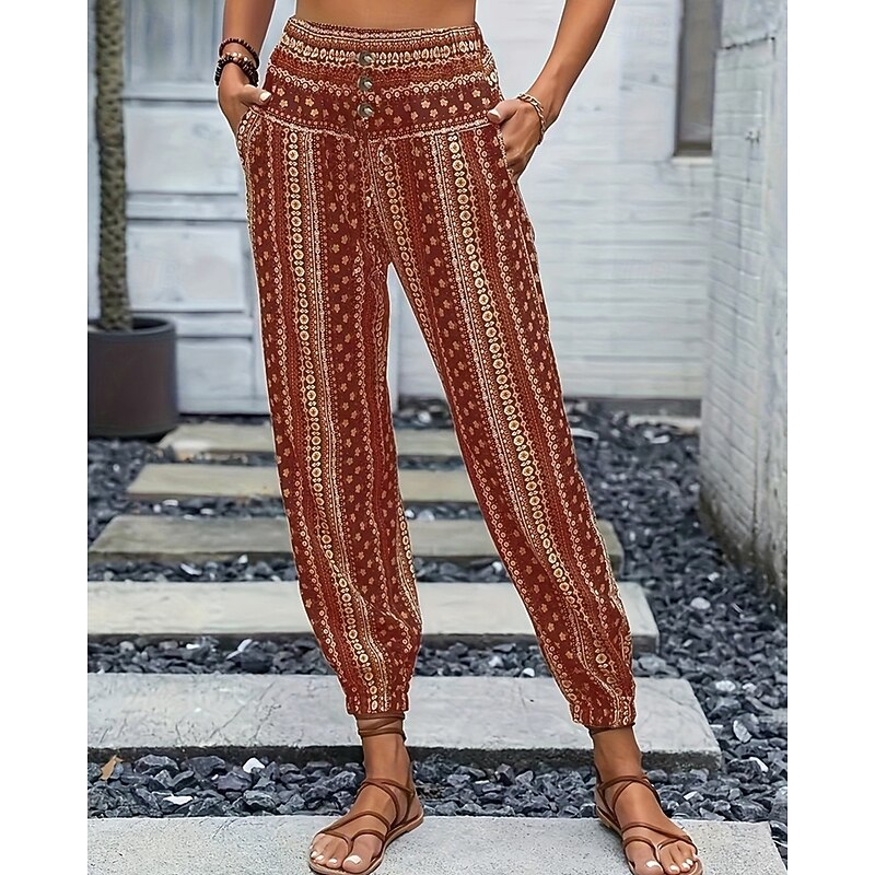 Women's Joggers Pants Trousers Vacation Boho Full Length Mid Waist Geometic Elastic Waist Breathable Comfortable Micro-elastic Street Daily Wear Going out Dark Brown White Red Dark Green Summer 25