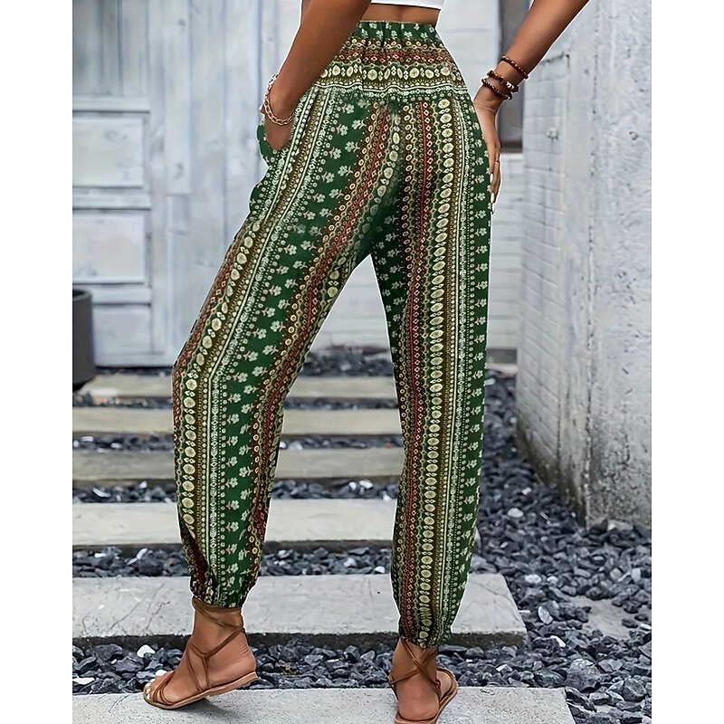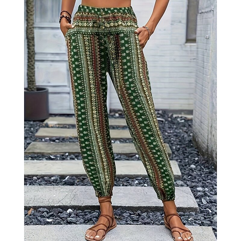 Women's Joggers Pants Trousers Vacation Boho Full Length Mid Waist Geometic Elastic Waist Breathable Comfortable Micro-elastic Street Daily Wear Going out Dark Brown White Red Dark Green Summer 24