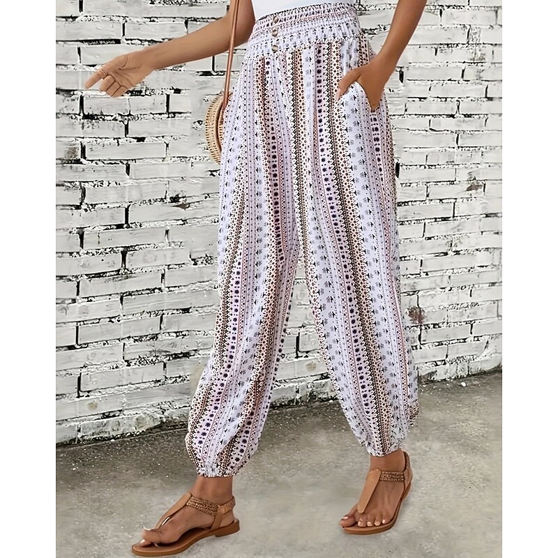 More information about Women's Joggers Pants Trousers Vacation Boho Full Length Mid Waist Geometic Elastic Waist Breathable Comfortable Micro-elastic Street Daily Wear Going out Dark Brown White Red Dark Green Summer