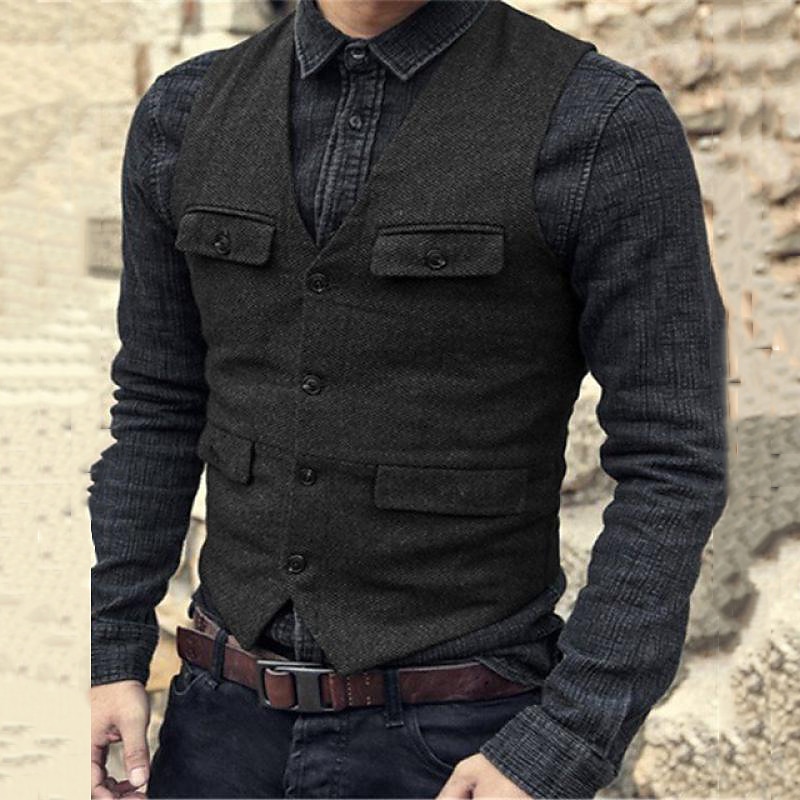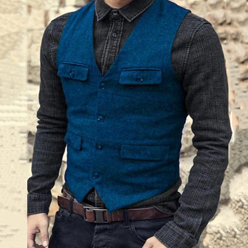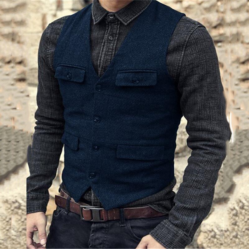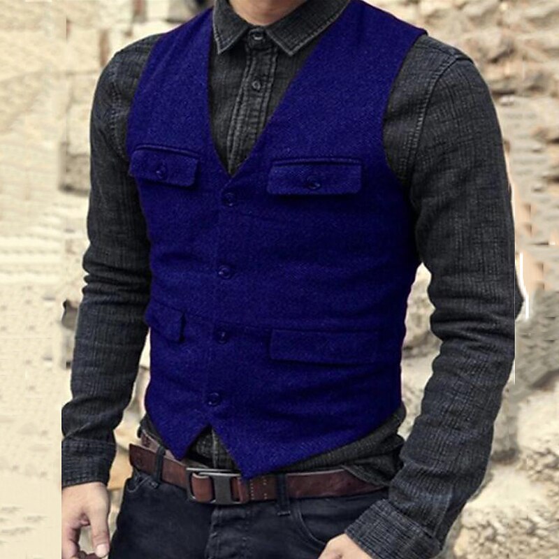 More information about Men's Vest Waistcoat Daily Wear Vacation Going out Fashion Basic Spring & Fall Button Polyester Comfortable Plain Single Breasted V Neck Regular Fit Black Dark Navy Dark Green Brown Vest
