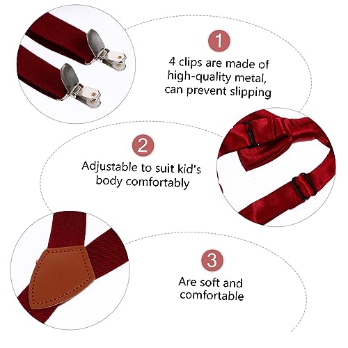 Beaupretty 1Set Adjustable Suspenders Set with Matching Bow Tie Premium Quality Clips for Boys for Parties Weddings Birthdays School Events 4