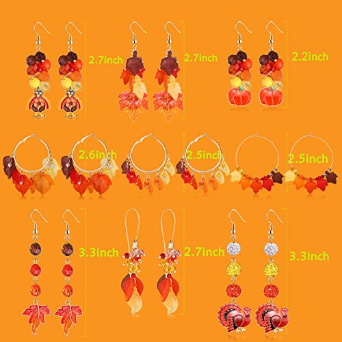 • Holiday Earrings for Women Variety Pack:9 pairs thanksgiving holiday themed dangling earrings including 3 pairs layer maple leaf long dangle earrings 3 pairs maple leave big round geometric hoop earrings and 3 pairs turkey pumpkin charms dangles earrings .So much styles and colors thanksgiving themed earrings bulk can matching your fall autumn outfits ,making you fashionable ,stylish , charming and more eye-catching in fall season .