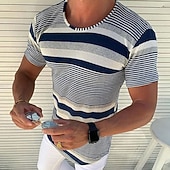 More information about Men's T Shirt Knit Tee Tee Top Short Sleeves Crew Neck Summer Stripes Pit Strip Fashion Designer Basic Knitted Vacation Street Going out Dark Blue Top Tee for Men