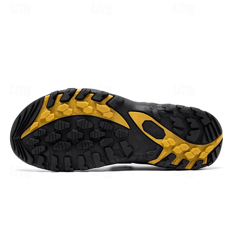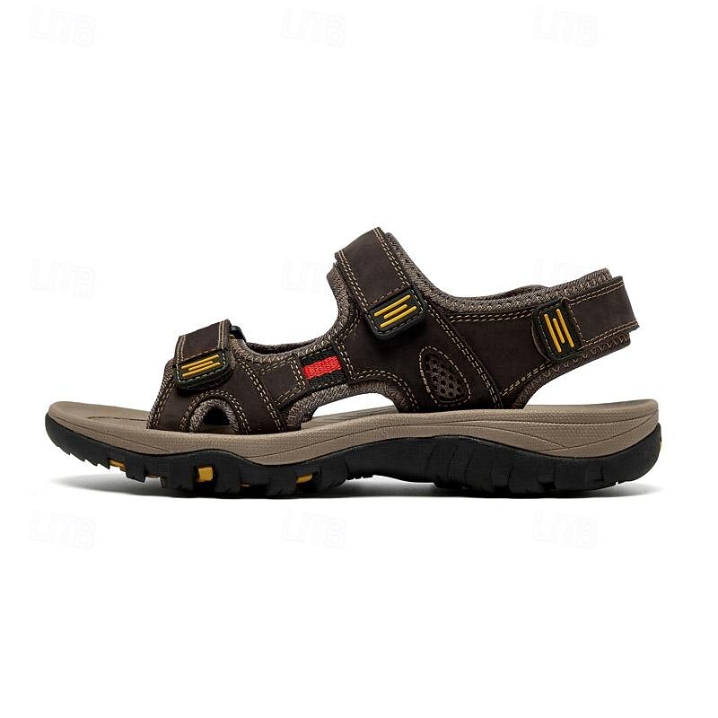 Highlights [Fabric] : Crafted from a combination of leather and cowhide, these men's outdoor hiking sandals ensure both breathability and superior durability. The Lycra lining adds an additional layer of comfort, making them perfect for long hours of wear during outdoor activities. [Fit] : These sandals feature an open toe design, providing ample space for natural foot movement. The inclusion of adjustable hook-and-loop straps offers a customizable fit, ensuring the sandals stay securely in place during any adventure. [Design Highlights] : Emphasizing a rugged and modern look, the sandals incorporate a versatile earth-toned color scheme with stylish accents for a contemporary flair. The robust, textured rubber outsole is slip-resistant and provides excellent traction on a variety of surfaces. [Occasions] : Ideal for summer adventures, beach outings, and casual outdoor activities, these sandals are well-suited for both leisurely walks and more vigorous hikes. Their versatile look also makes them a fashionable choice for everyday wear. [Size Range] : Available in a wide range of sizes from US7 to US12, these sandals cater to various foot sizes, ensuring a proper fit for most men seeking comfort and style in their outdoor footwear.