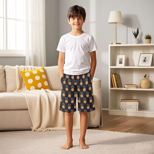More information about ALAZA Vintage Pineapple Fruit Black Pajama Shorts Elastic Waist Casual Sleep Shorts with Pockets Size 6-14