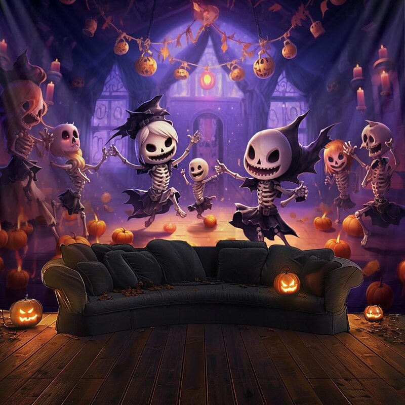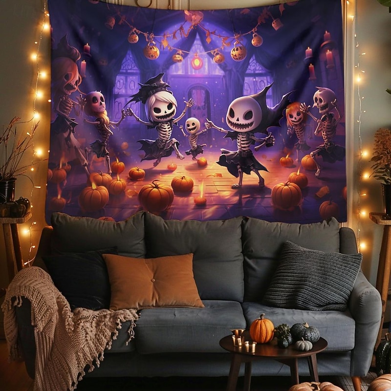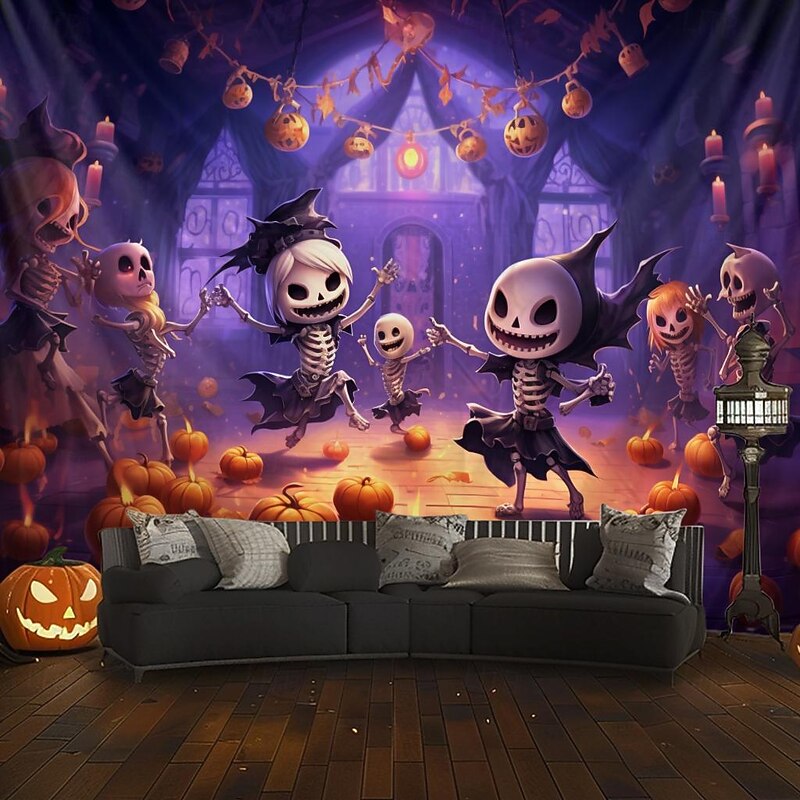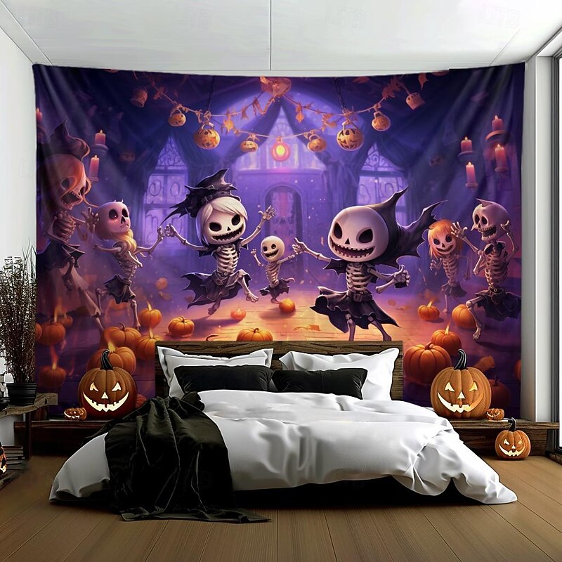 HOT ! Halloween Decorations Cute Skeleton Hanging Tapestry Wall Art Large Tapestry Mural Decor Photograph Backdrop Blanket Curtain Home Bedroom Living Room