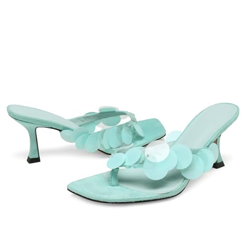 HOT ! Black Flip Flop Heels Sandals for Women with Plastic Disc Straps Comfortable Slip on Open Toe Kitten Heel Thong Sandal Casual Summer Dressy Shoes.