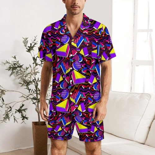 • Soft Pajama Sets:Mens pajama sets is made of polyester & spandex fabric,men's 2 piece outfits short sleeve with a little stretch touch, silky, smooth, soft and comfy;lightweight and skin-friendly material help you have a sound sleep at night;this mens outfit does not just provide exceptional comfort but also has a sweat-wicking and cooling effect;that keeps you dry in the hot weather;the 80s Leopard Triangle pajamas are perfect for wear morning or throughout the year when you sleep or lounging