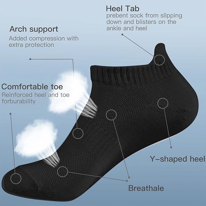 • Excellent quality and materials: Women's socks are made of cotton rich blended fabric with good breathability, lightweight cotton is wear-resistant, and elastic fibers provide comfortable fit for sports socks, support pads for you, and make your feet more comfortable!